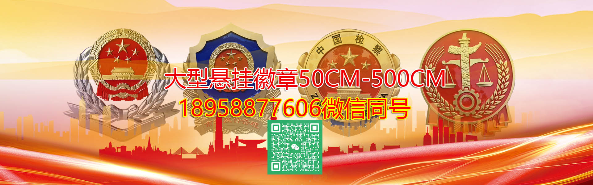 本厂现拥有现代厂房和专业的技术队伍及设备.专门从事国家,政府部门及企事业单位的徽标生产和制作, 公司历来按国家标准设计,严格按照《中华人民共和国国徽国家标准》「GB15093-2008]制作;并采用先进的浸透压踌造技术及高光泽静电均布喷烤漆工艺,再加耐侯保护期,使产品具有牢度强、拒风雨、抗晒,色彩鲜艳等特点。制作材料均采用ZL102踌造铝合金,规格品种齐全;设计规范。所制的悬挂用徽标工艺先进、材料精良、色泽纯正、做工考究、质量保证。 我公司长期供应悬挂用市场监督管理徽、行政执法徽,政协徽、交通徽,司法徽,税务徽,检察院徽,法院徽,消防徽,自然资源徽,团徽、队徽等。其中我厂的新款市场监督管理徽标,新款行政执法徽和新款检徽这几年最流行的产品。